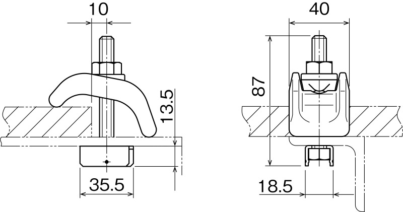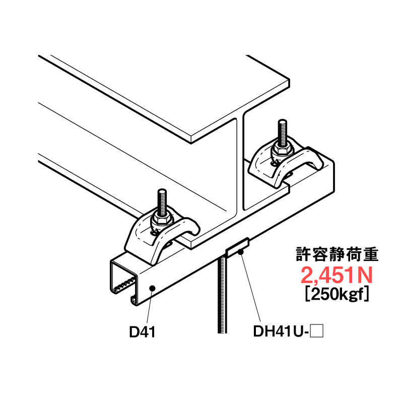 - ●造営材のフランジ幅の範囲で、任意の場所から吊りボルトを下げられます。
