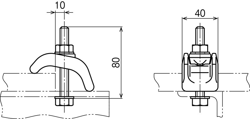 • ●造営材のフランジ幅の範囲で耐震架台等の支持部材を固定できます。