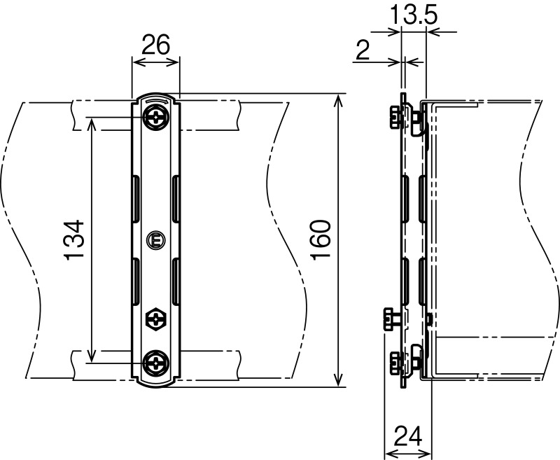 - ●平形カバー同士の上下のカバー及び、ケーブルラックの電気的接続を行います。