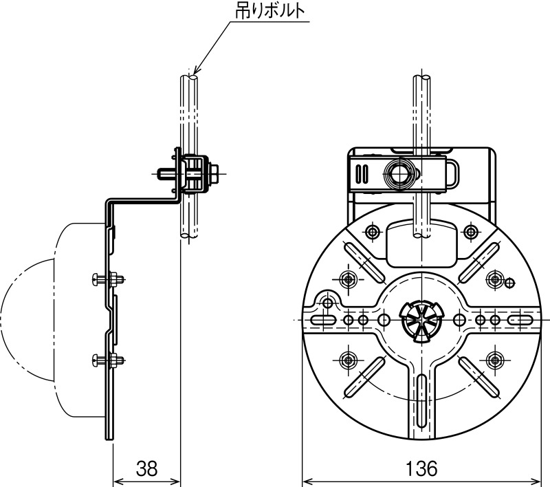 - ●吊りボルトに対して平行に、ネットワークカメラの取り付けができます。