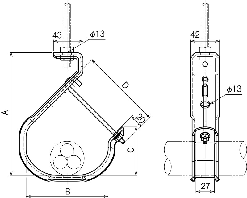 ●CV、CVTケーブルなどの外径の大きいケーブルの支持に最適です。
